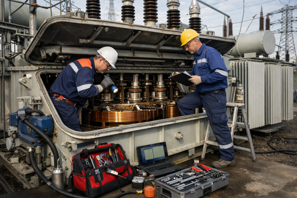 Comprehensive overhauling of distribution transformers including insulation testing, winding resistance, and oil circulation for performance optimization.