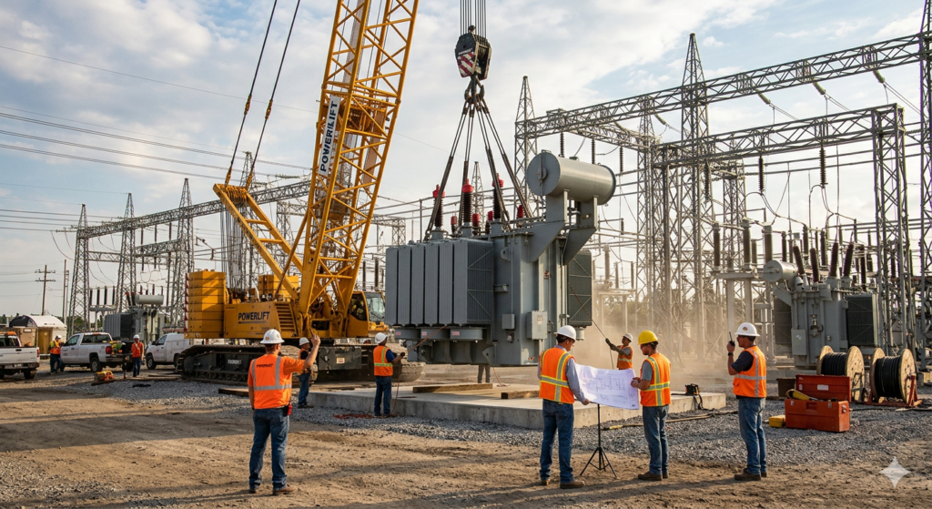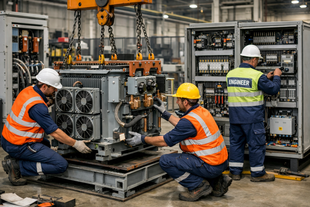 Installation and setup of industrial electrical equipment ensuring safe and efficient operation.